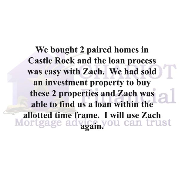 Zach Smith is the owner of Chariot Financial. He has been in Mortgage and Real Estate industry since May of 2003 after he graduated from Colorado State University. He specializes reverse mortgage loans, first time homebuyers, real estate investment loans, and refinances. He has called Littleton, Colorado his home for the last 25 years. He enjoys biking, hiking, and live music in his spare time. He is committed to the success of all those he serves through his business.